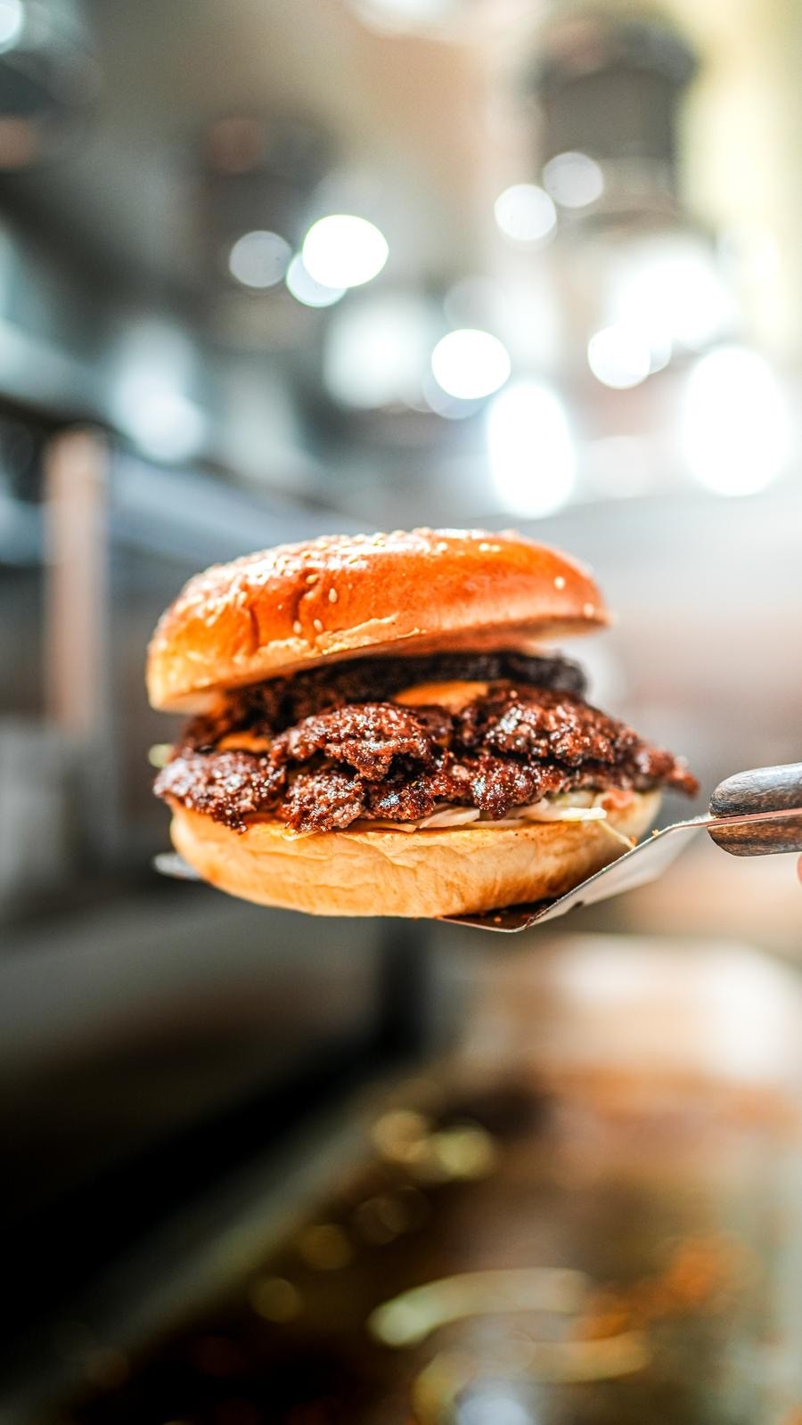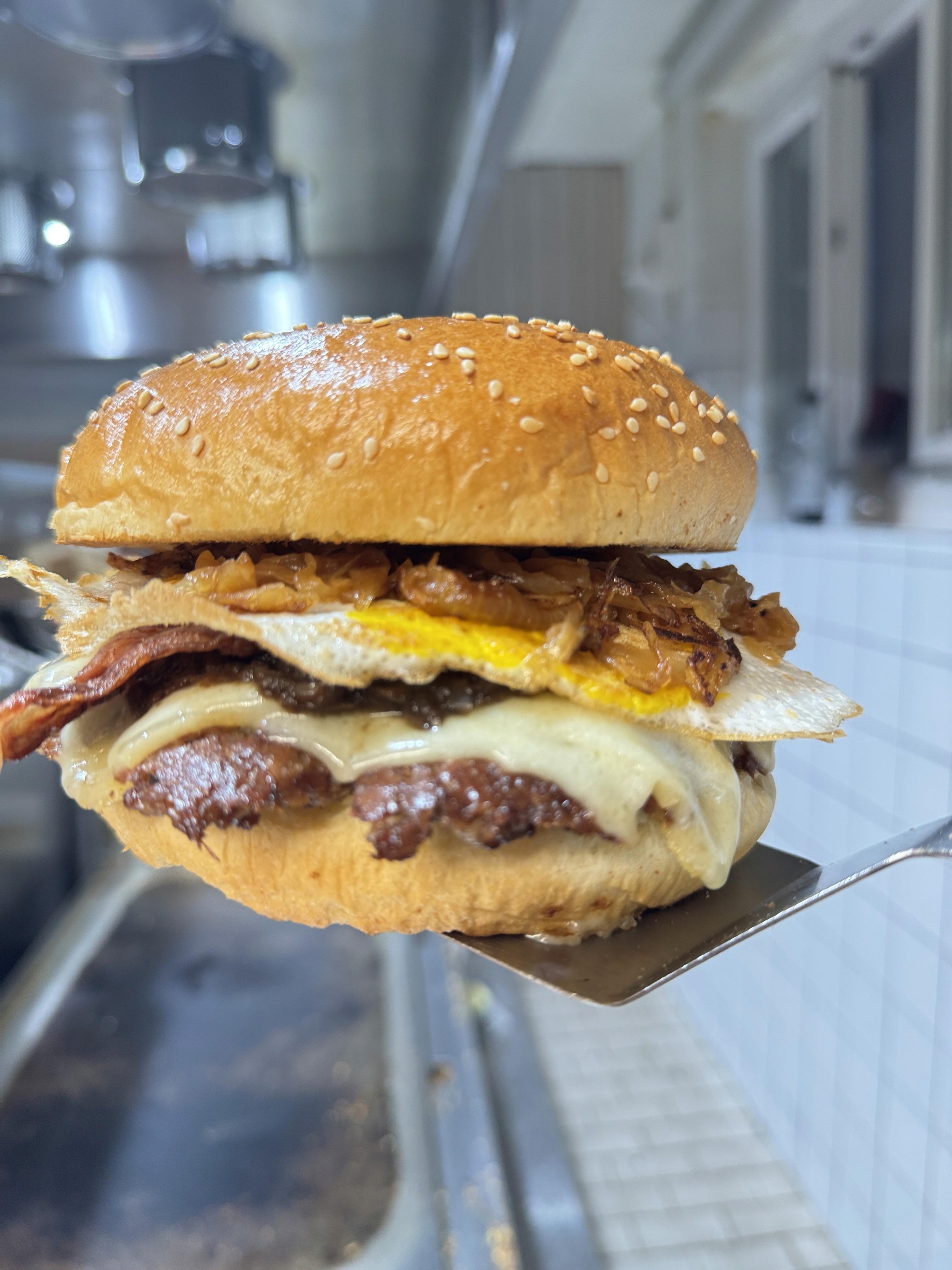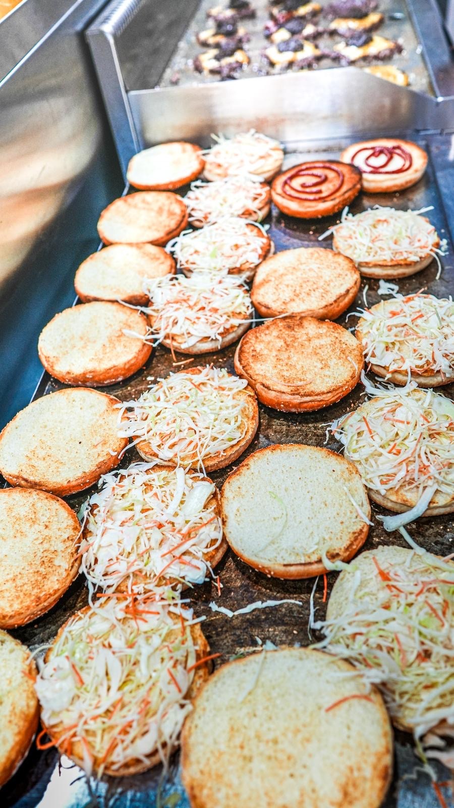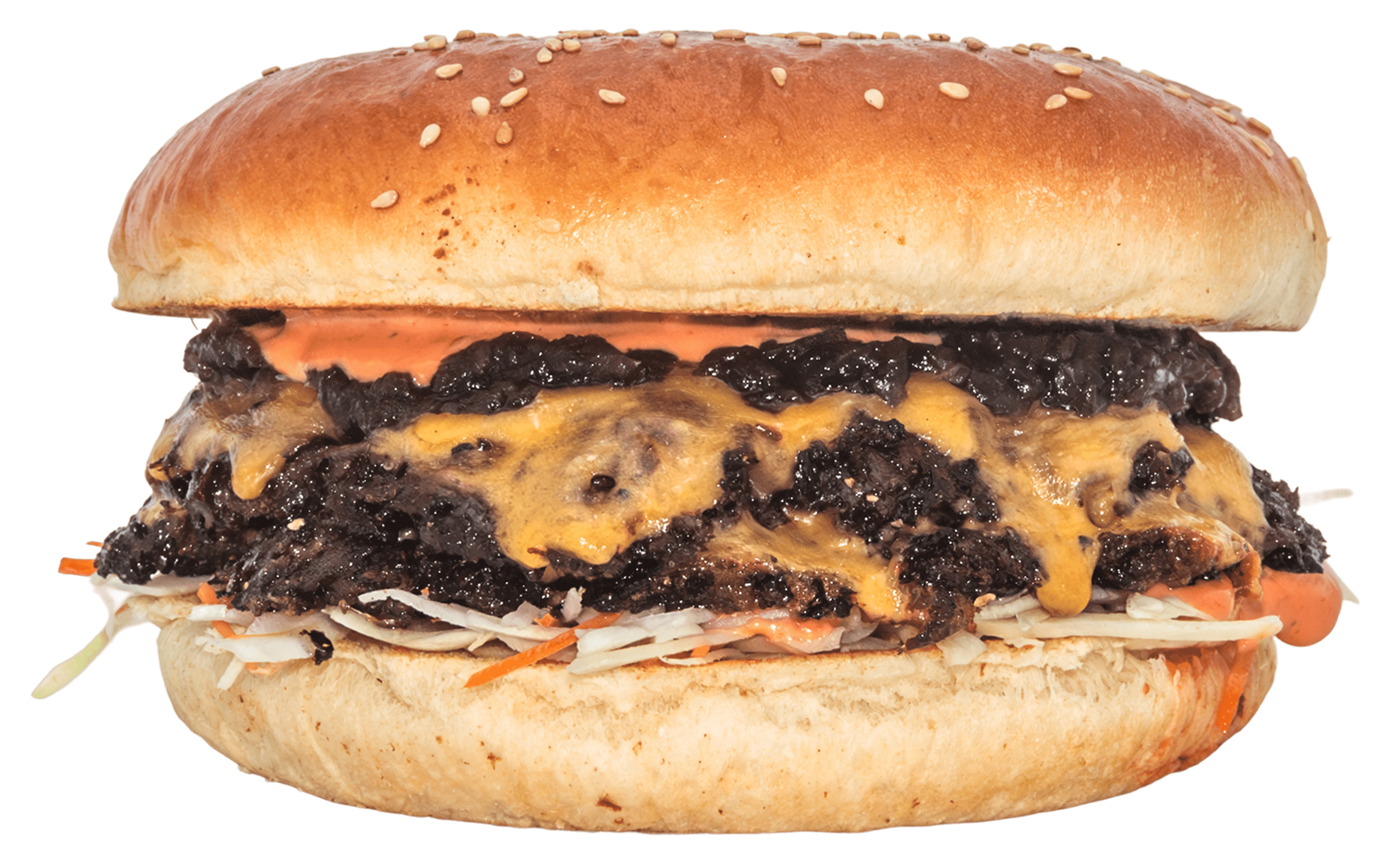 Saftiges Rindfleisch-Patty, geschmolzener Cheddar, Coleslaw, kandierte Zwiebeln und ein Hauch unserer geheimen Sauce auf goldbraun getoastetem Brioche-Bun.