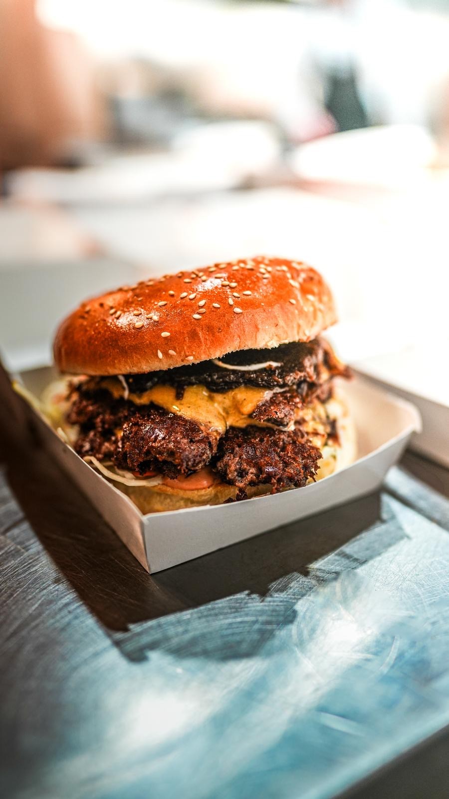 Komm vorbei und erlebe unsere Burger frisch vom Grill, direkt bei uns im Restaurant. Oder bestell ganz entspannt von zu Hause und spür, wie echter Burger sein sollte.